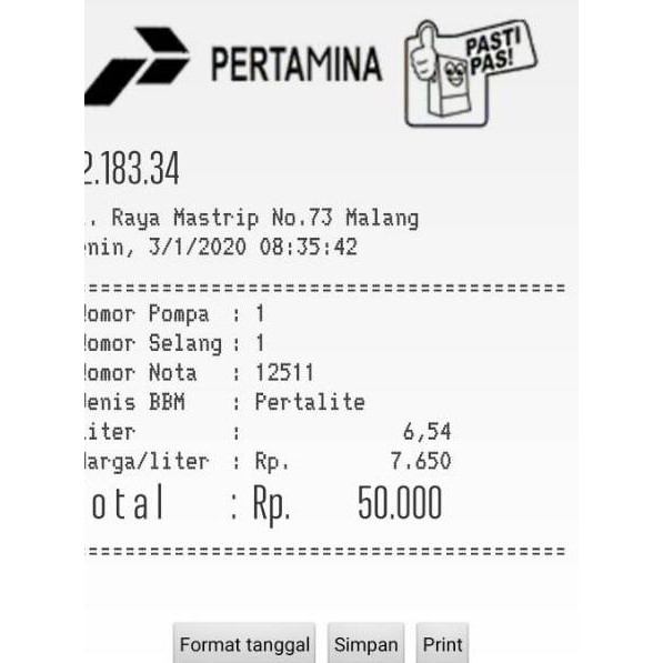 Nota Bensin : Contoh Struk Bensin Masnurul - Það er einfalt alkóhól og er léttur, rokgjarn, litarlaus, eldfimur og eitraður vökvi með mjög sérstakri lykt sem er mjög svipuð en aðeins sætari en lyktin af etanóli (drykkjar alkóhól).. Uang transpor perjalanan dinas dalam kota dalam rangka kegiatan operasional satker (akun 524113) tidak dapat diberikan apabila perjalanannya menggunakan kendaraan dinas dan/atau untuk perjalanan yang bersifat rutin. Dalam perjalanan tim merapah trans jawa kompas.com dari jakarta hingga solo, tercatat ada beberapa gerbang tol yang tidak mengeluarkan. Bukalapak.com inilah 10 tips belanja online aman software struk bbm bensin agar tak tertipu teknologi yang berkembang semakin cepat ini berdampak ke banyak hal salah satunya cara berbelanja. Pasti saat mendengar istilah tersebut yang anda pikirkan adalah bagaimana cara membuat struk pom bensin kan , heheheh saya juga demikian , namun tau kah anda ? Paper roll atau yang kita kenal dengan kertas struk biasa digunakan sebagai bukti pembayaran di supermarket, resto, pom bensin, dll.